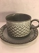 Tiber Kaffekop og Underkop Hvid med Lysegrå Bord og Guldkant.