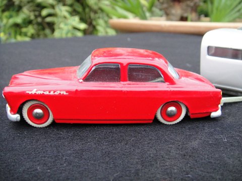 Volvo Amazon 4 dørs 1957-62 med volvodecaler, Rød.
