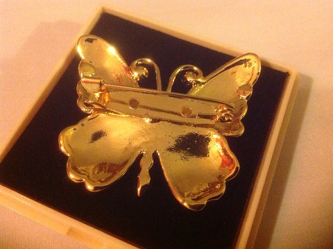 Broche. Sommerfugle med emalje og simili krystaller. Forgyldt metal.