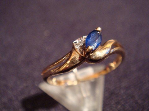 Ring med blå safir ca 0,40 ct og hvide zirkoner